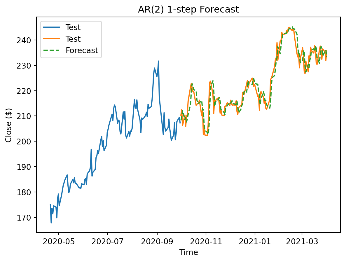 - The first pitfall to consider is the reality that the AR model is very short-term focused. When it comes to stocks, people are often interested in the long-term predictions. This model would struggle with that because it is highly dependent on true rolling forecasts, and it is sensitive to recent change. A safeguard against this concern is to combine with other model strategies to account for more history and trend.