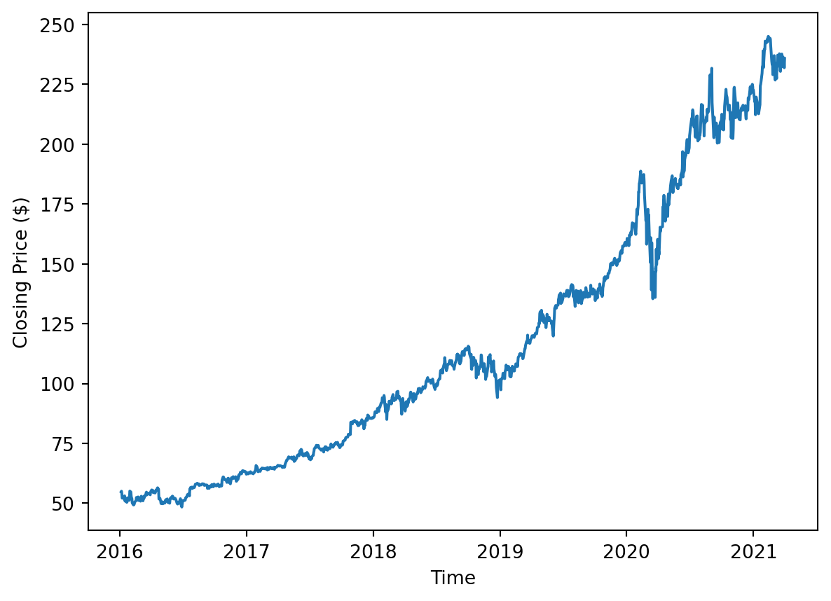 plt.ylabel("Closing Price ($)")