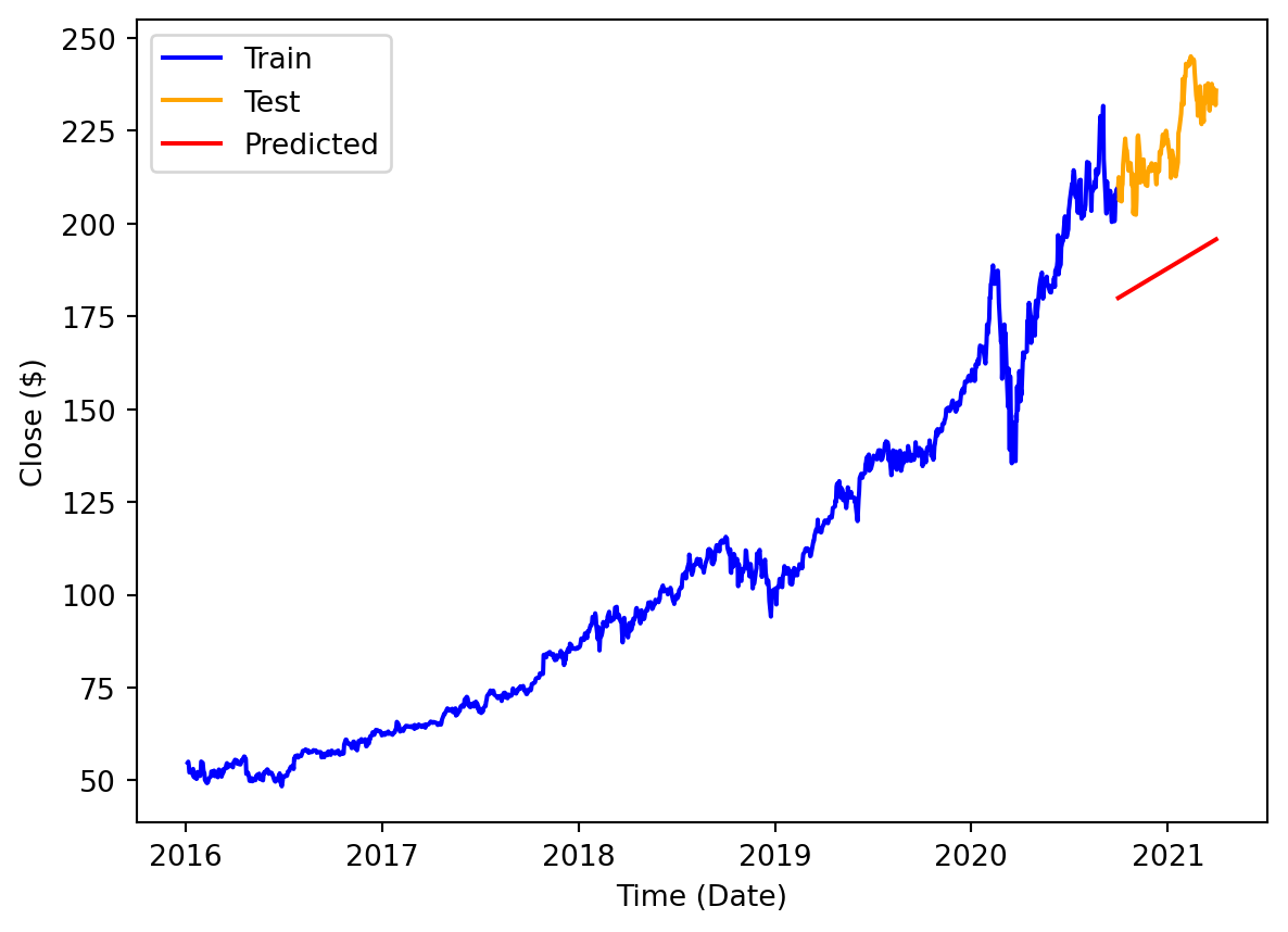 I believe I was most correct in predicting that the model would fail at predicting the daily rhythms of the stock trend. The data is too granular and volatile. However, I was somewhat unsuccessful in predicting that it would excel in long-term forecasting. I didn’t realize how intent the model would be on capturing the line from the whole 5-year span. I believe it didn’t consider recent data enough.