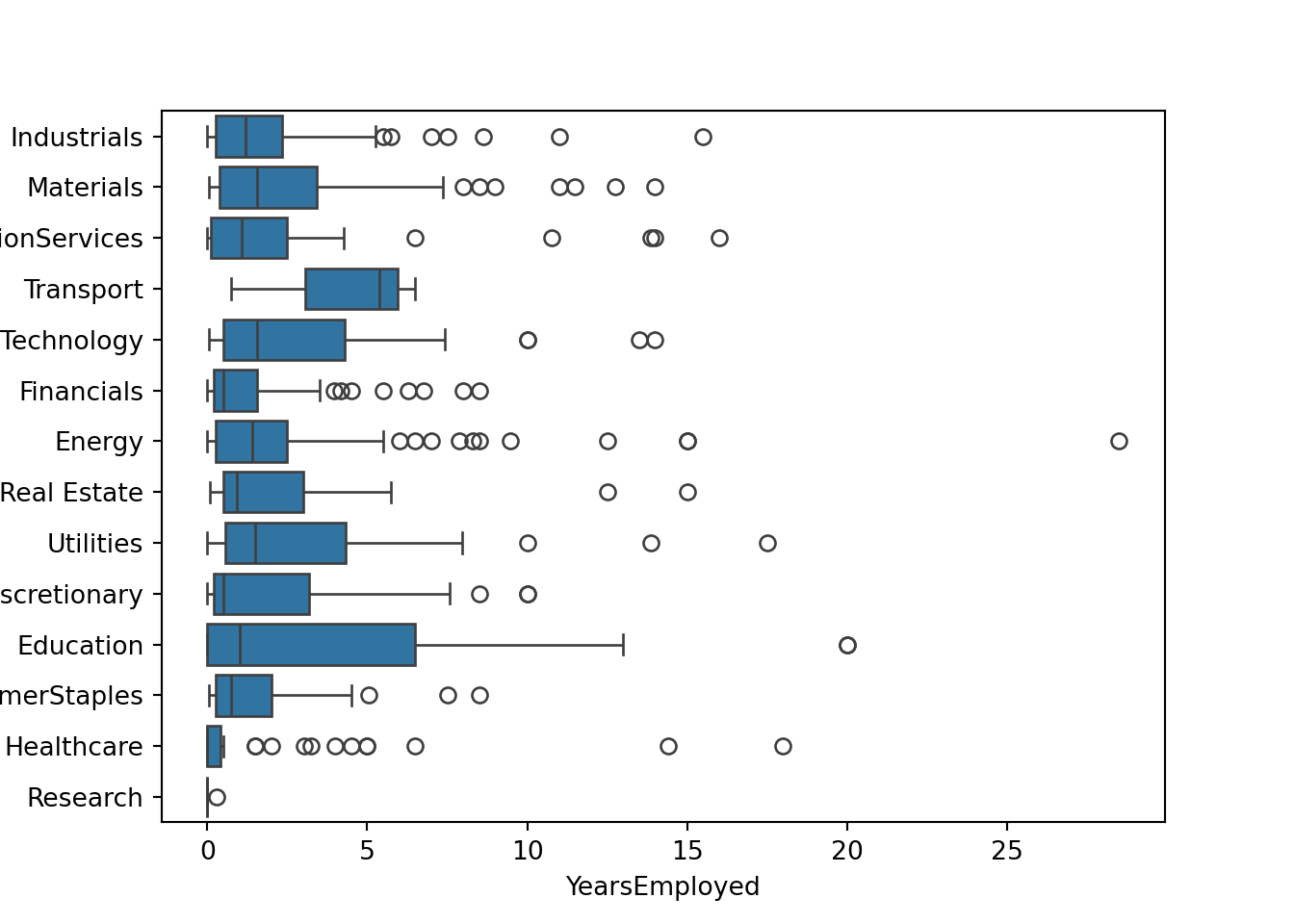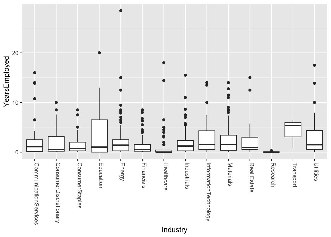 ggplot(approval_data, aes(x=Industry, y=YearsEmployed)) +