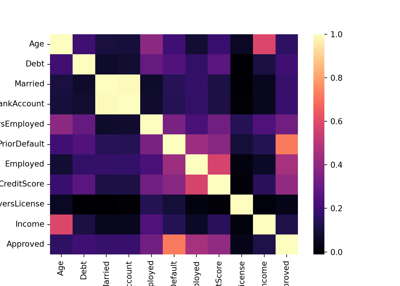 sns.heatmap(corr_approval_data, annot=False, cmap="magma")